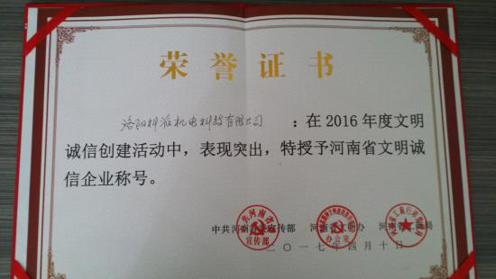 科派公司榮獲“文明誠信企業(yè)” 發(fā)布時間:2017-07-16作者:點擊:3419字號:大中小 洛陽科派機電科技有限公司榮獲河南省“文明誠信企業(yè)”、洛陽市“文明誠信企業(yè)”。